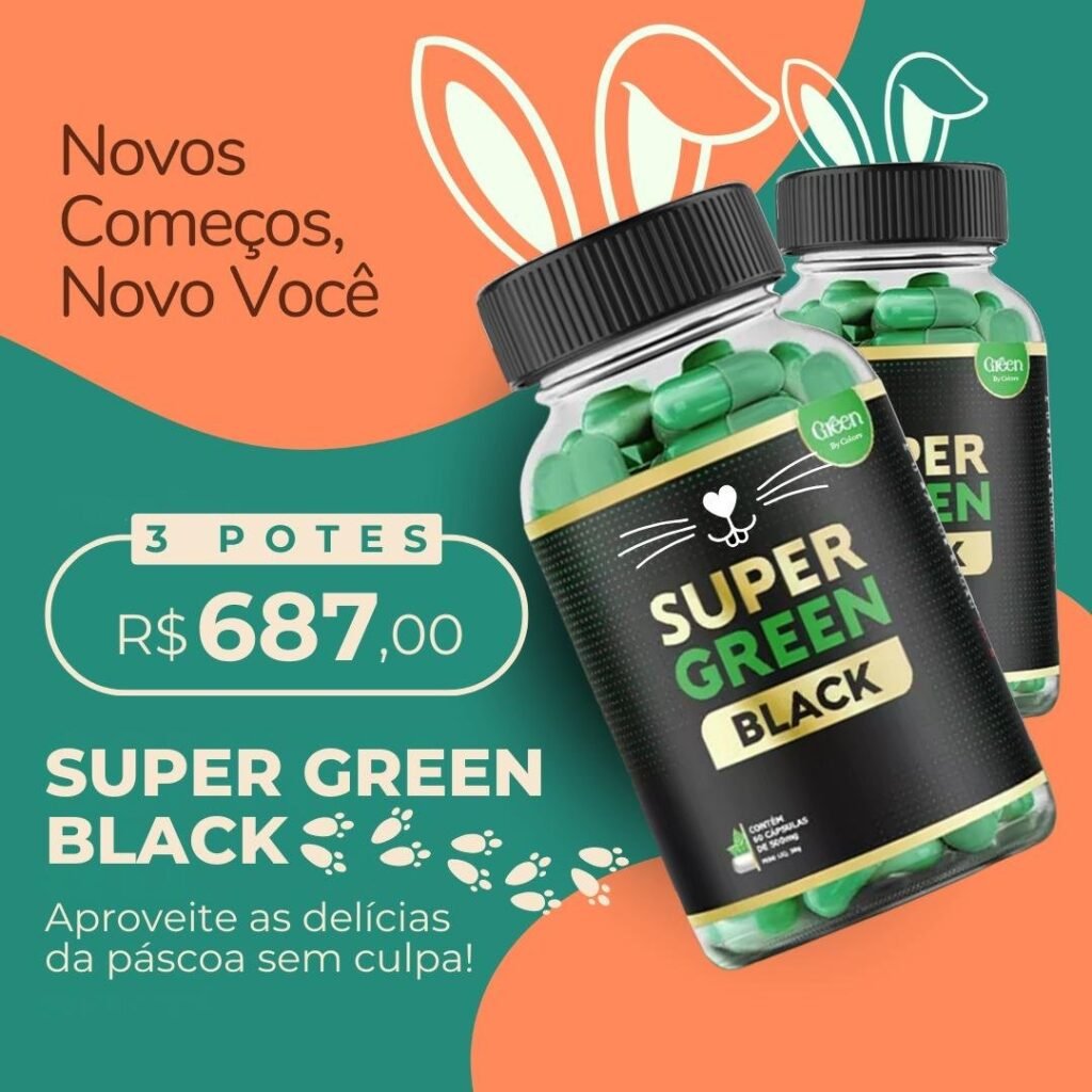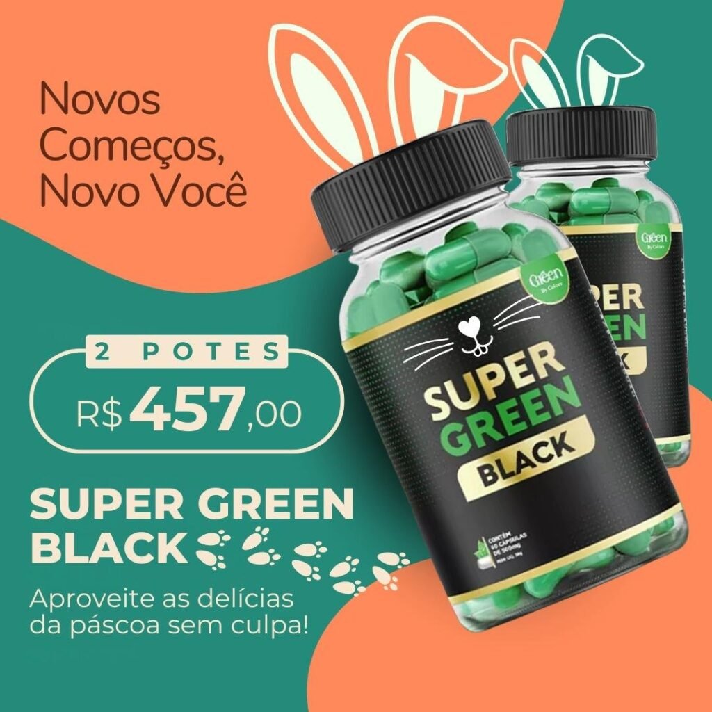 O Super Green Black é formulado para acelerar o metabolismo, eliminar gordura e proporcionar mais energia e disposição. Com ingredientes cuidadosamente selecionados, ele auxilia no processo de emagrecimento de forma saudável, promovendo mais bem-estar e autoestima.